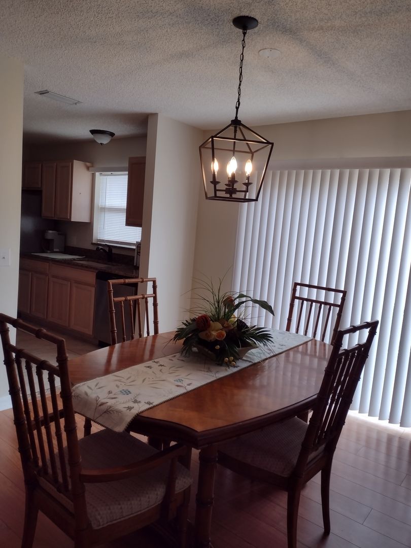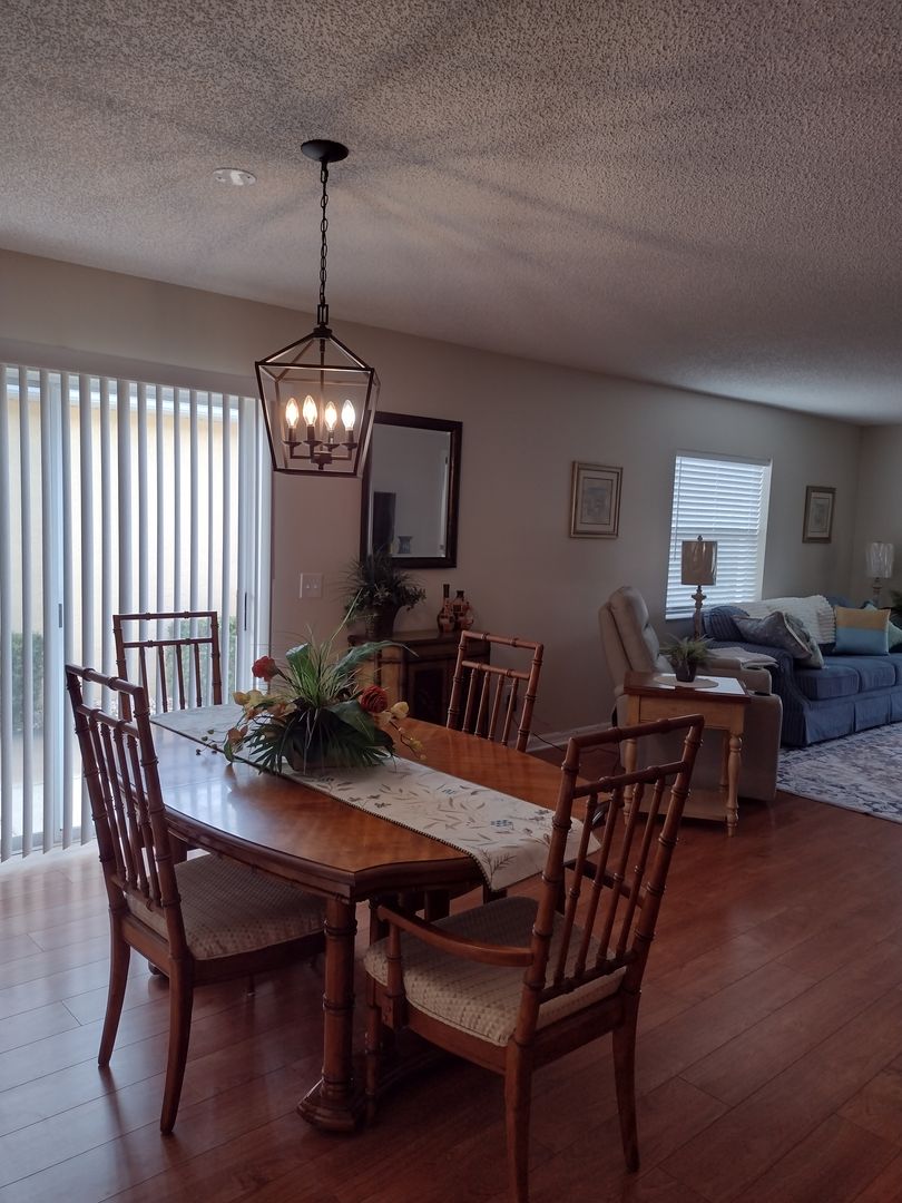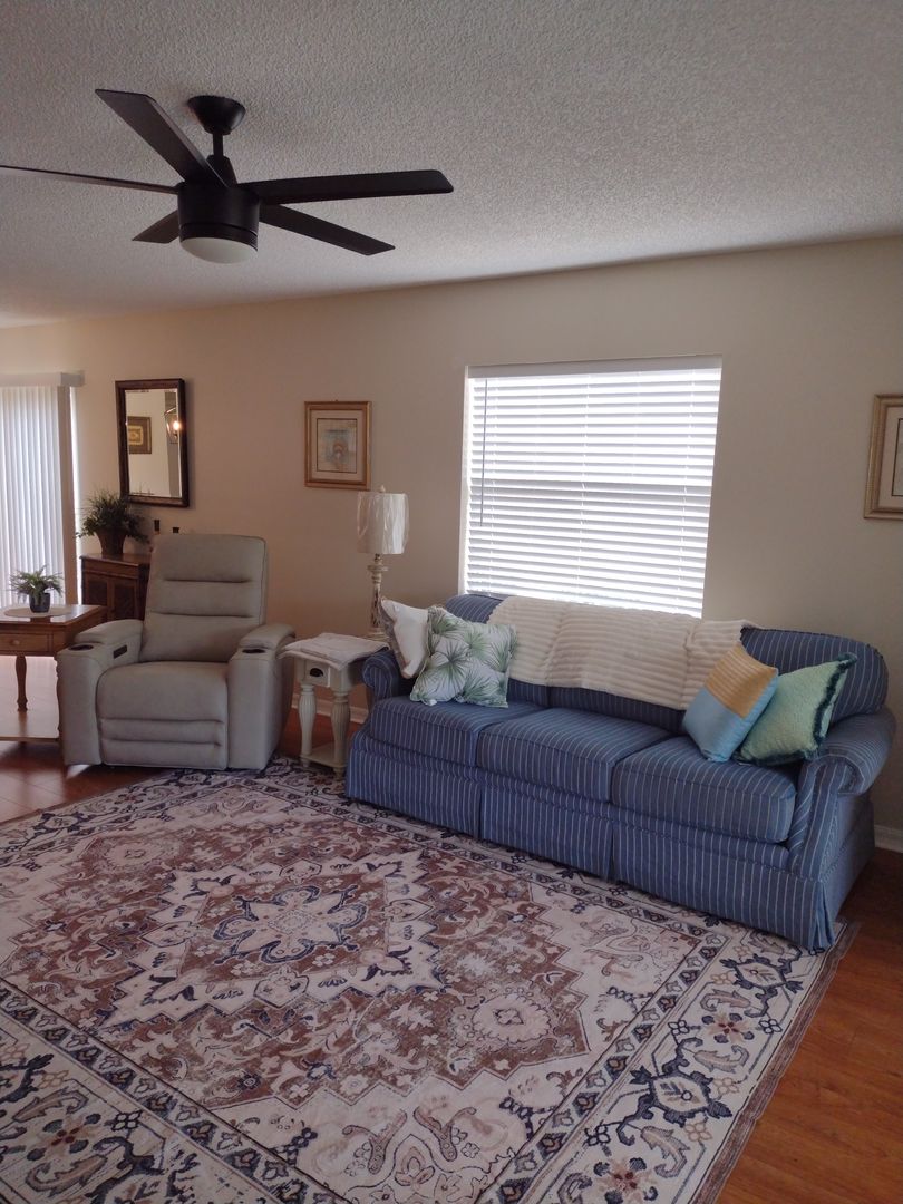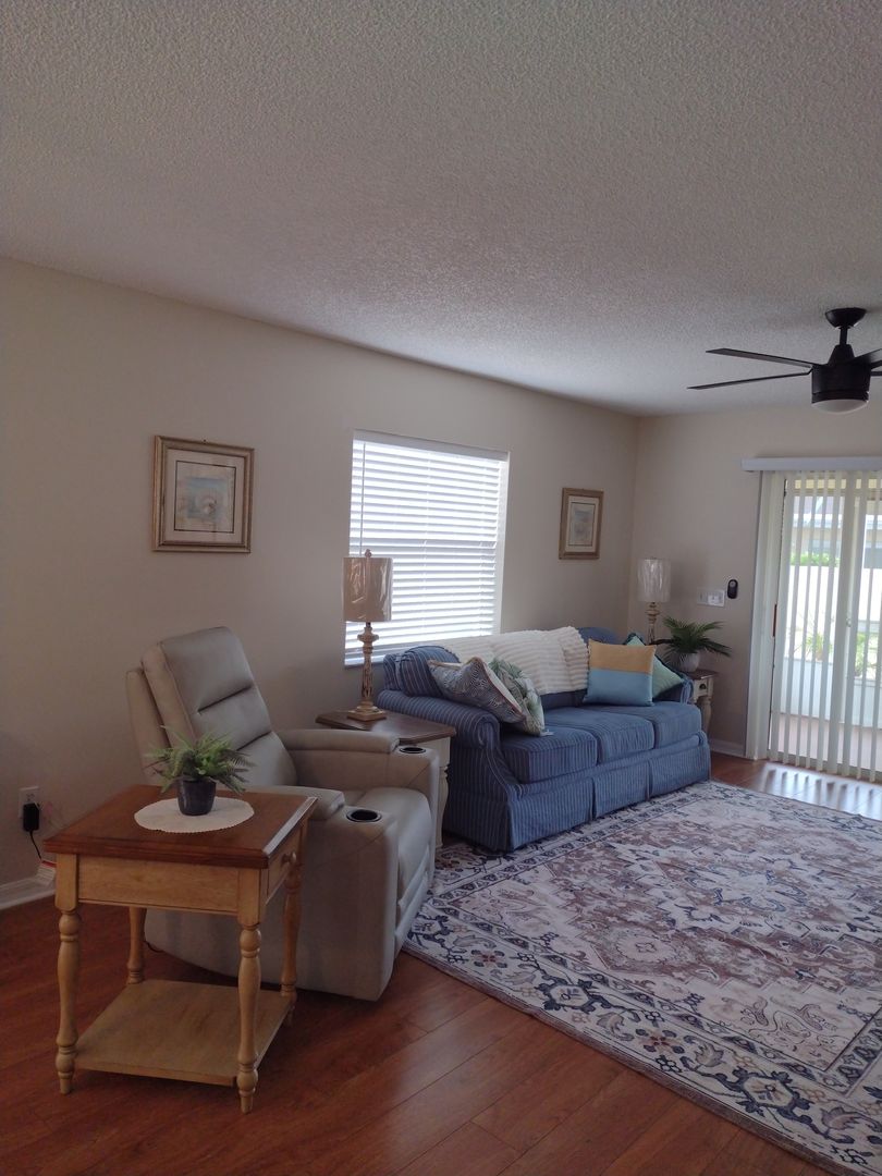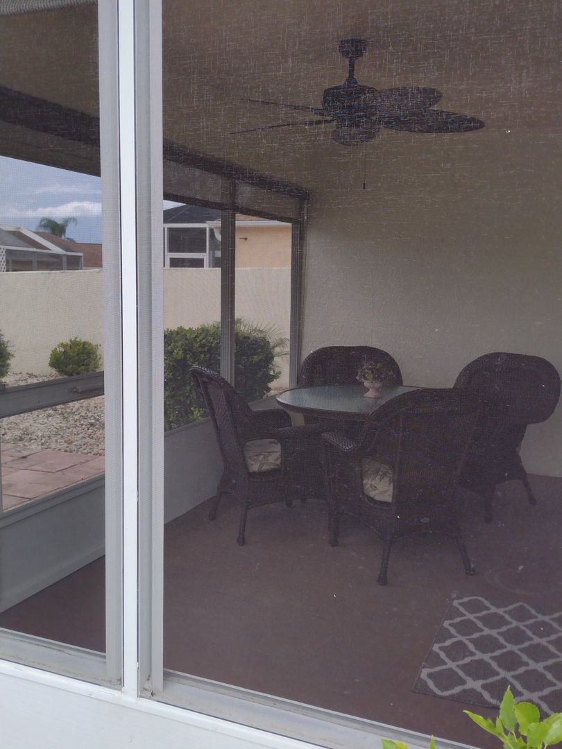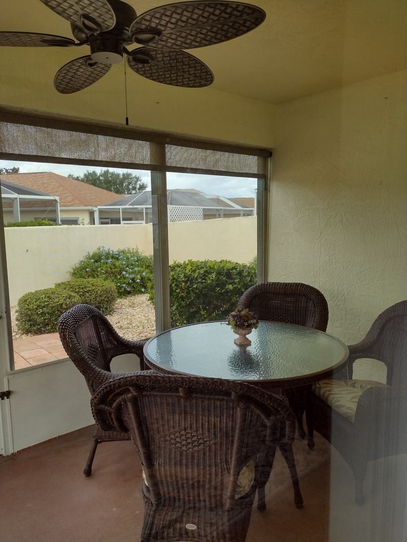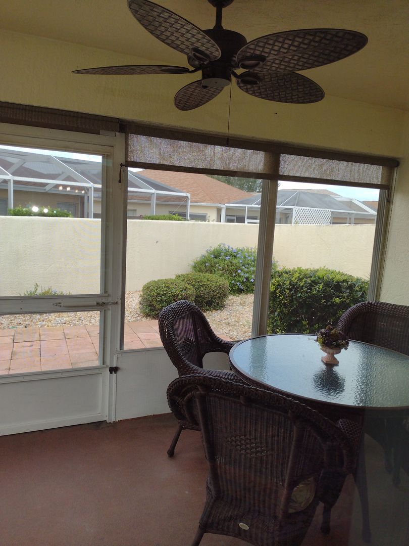 Long term OR Seasonal with a three month minimum, this 2 Bedroom, 2 Bath Villa is nicely furnished and move in ready. 1116 SF. This is a turn key unit with all electric appliances, washer and dryer in the garage. Relax on the screened lanai and enjoy a privacy walled back yard. Yard maintenance included. Golf cart is included as a courtesy with required insurance by tenant. Located in The Village of Santiago close to everything.