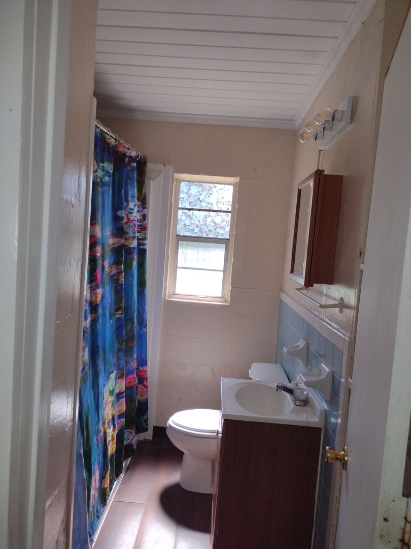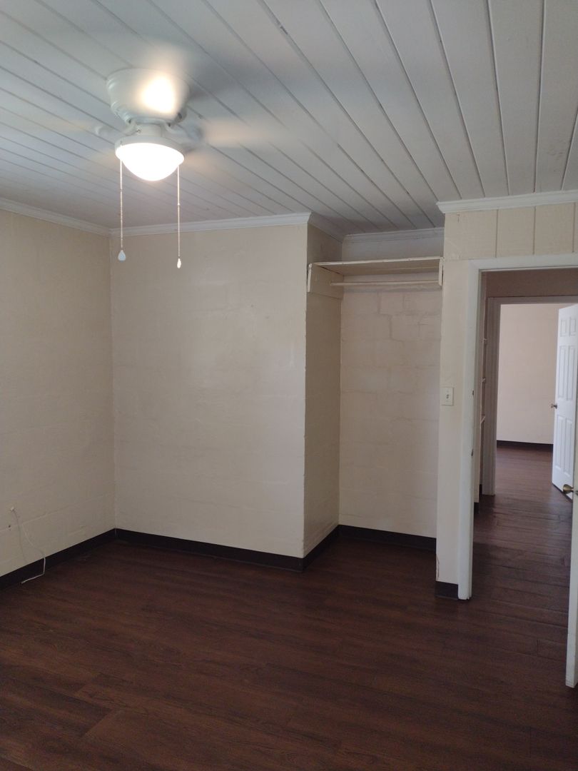 Shed in back with a sizeable fenced yard. Washer dryer hook up on back porch.